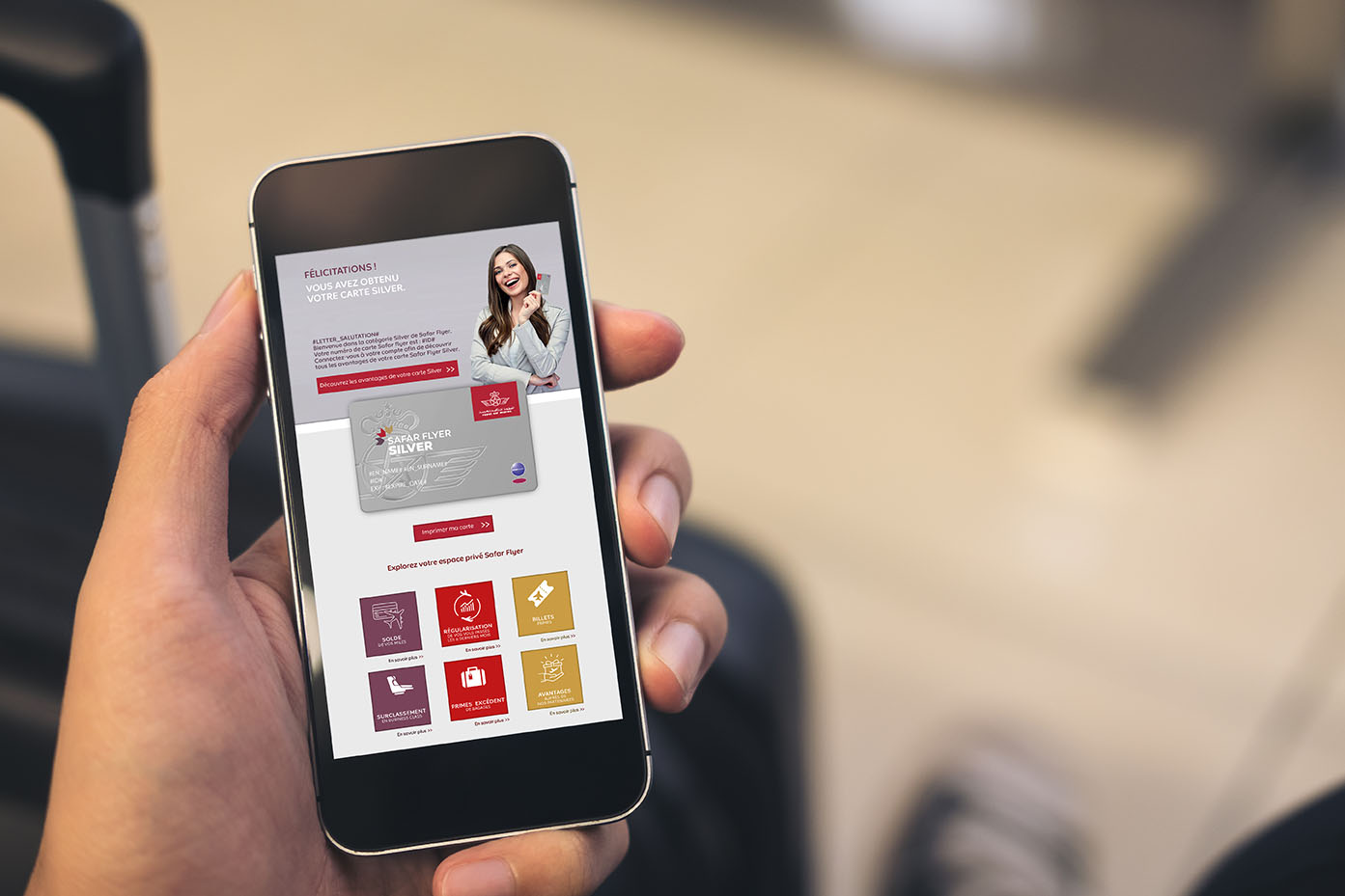 Accedi alla tua carta virtuale personalizzata, indipendentemente dal livello della tua carta, accedendo alla sezione “Il mio profilo” del tuo account Safar Flyer.