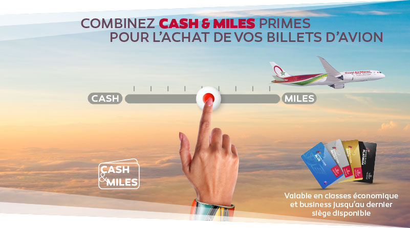 Cash & Miles — это платежное решение, позволяющее оплачивать билеты авиакомпании Royal Air Maroc частично денежными средствами и частично премиальными милями.